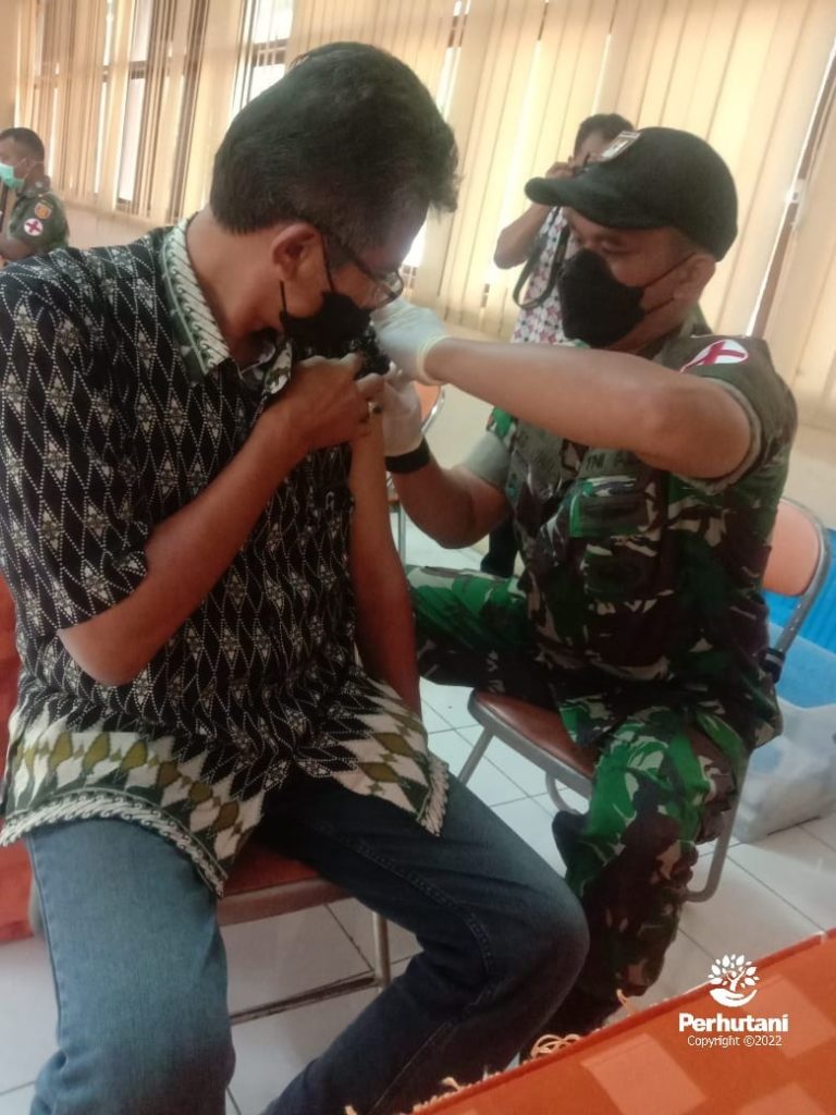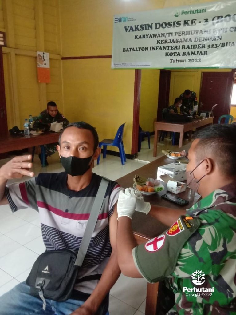 PERHUTANI KPH CIAMIS BERSAMA BATALYON INFANTERI RAIDER 323/BUAYA PUTIH GELAR VAKSIN DOSIS KE-3 BOOSTER