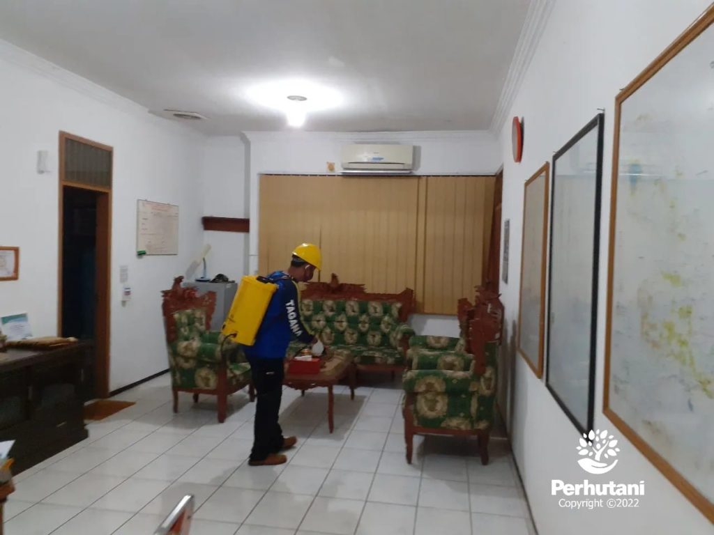 CEGAH PENYEBARAN OMRICON, PERHUTANI CIAMIS GANDENG TAGANA LAKUKAN PENYEMPROTAN DISINFEKTAN DI LINGKUNGAN KANTOR
