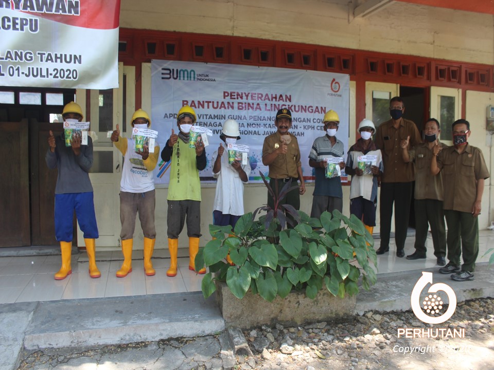 Perhutani Membagikan Vitamin dan Masker Kepada Tenaga Kerja Non Karyawan di Cepu
