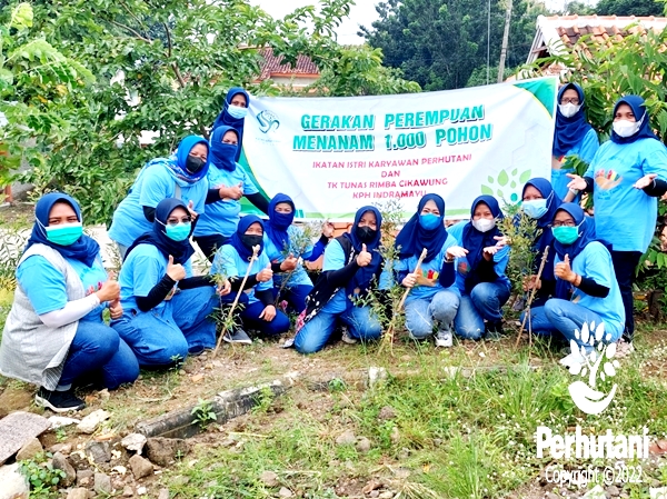 PEDULI LINGKUNGAN, PERHUTANI BERSAMA IIK PERHUTANI KPH INDRAMAYU LAKUKAN “GERAKAN PEREMPUAN MENANAM 1.000 POHON”