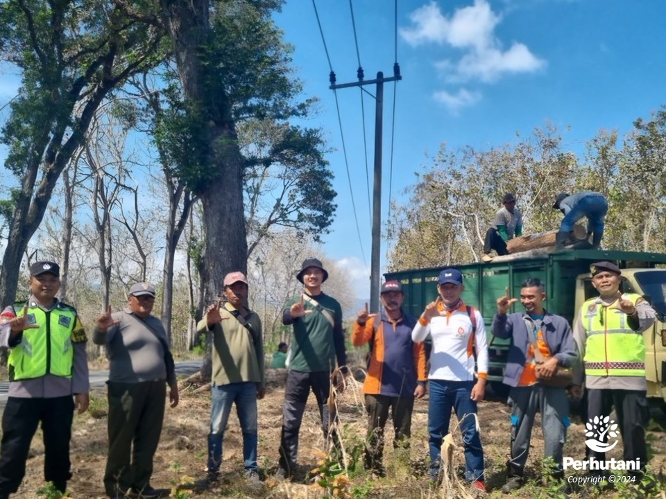 Perhutani Madiun Jalin Sinergi dengan PLN ULP Ponorogo dan Polsek Pulung dalam Pelaksanaan Tebangan di Sekitar Jalan Raya dan Jalur SUTT
