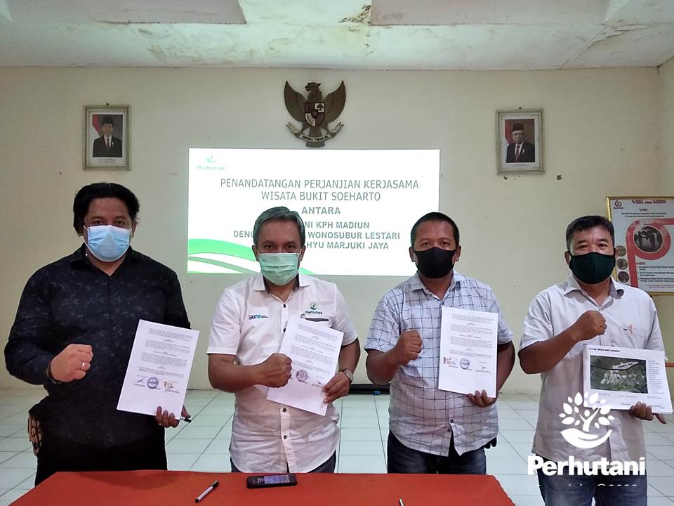 Perhutani, LMPSDH dan CV Wahyu Marjuki Jaya Kerjasama Pengelolaan Wisata Bukit Suharto