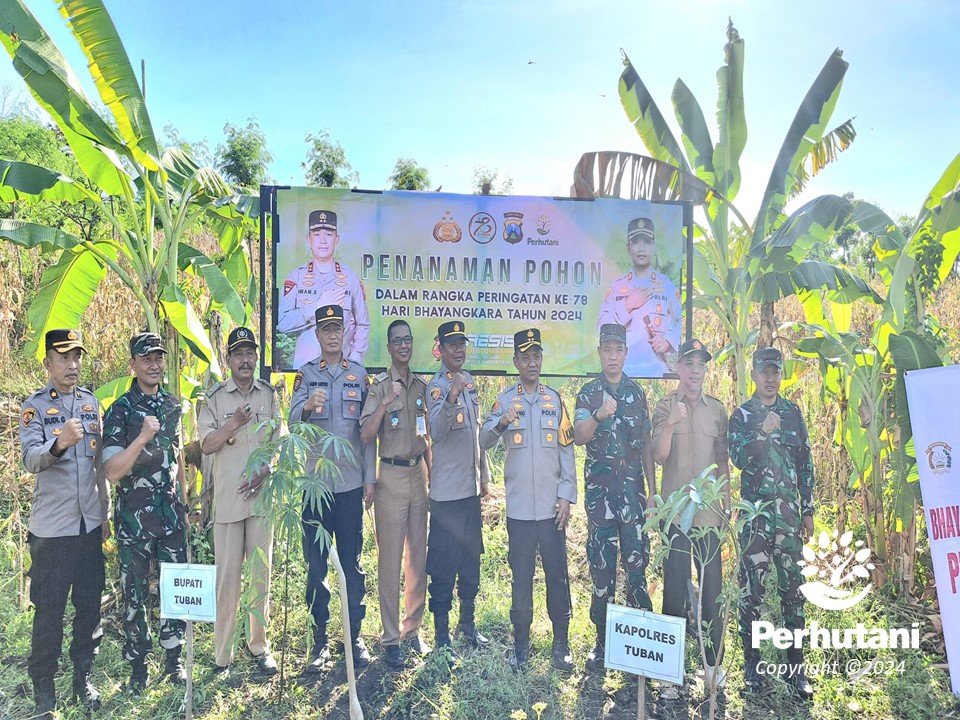 Perhutani KPH Tuban Turut Peringati Hari Bhayangkara ke-78 dengan Penanaman bersama TNI/Polri dan Forkopimcam