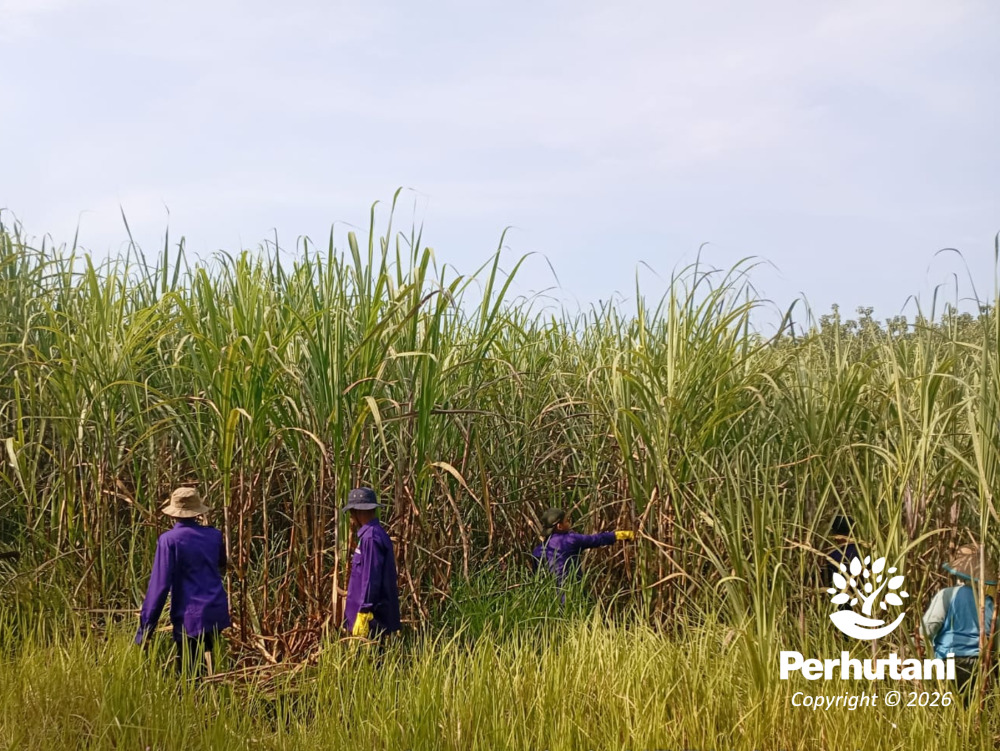 Dukung Ketahanan Pangan Gula, Perhutani Mantingan Libatkan LMDH dan Siswa SMK dalam Pemeliharaan Tebu