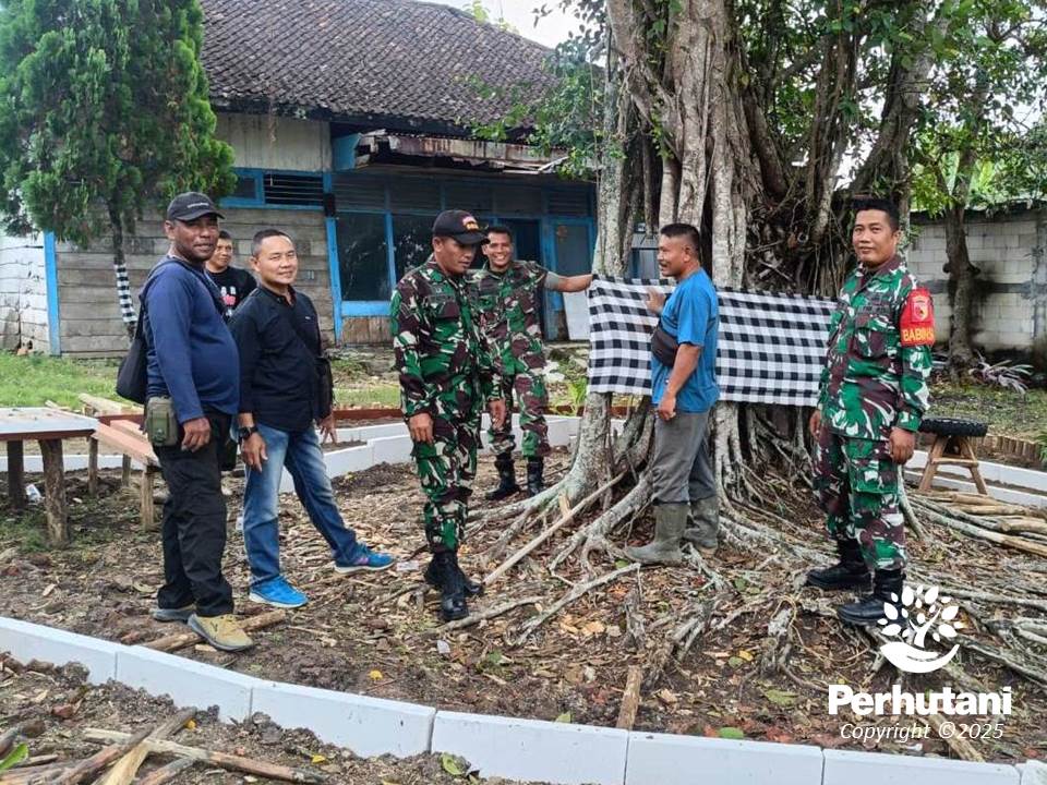 Perhutani Padangan Bersama Babinsa Tambakrejo Wujudkan Taman Bunga di Kantor BKPH Napis