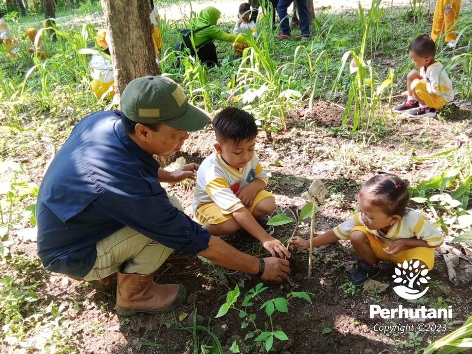 Cintai Hutan Sejak Dini, Perhutani Ngawi Ajak Siswa TK Menanam