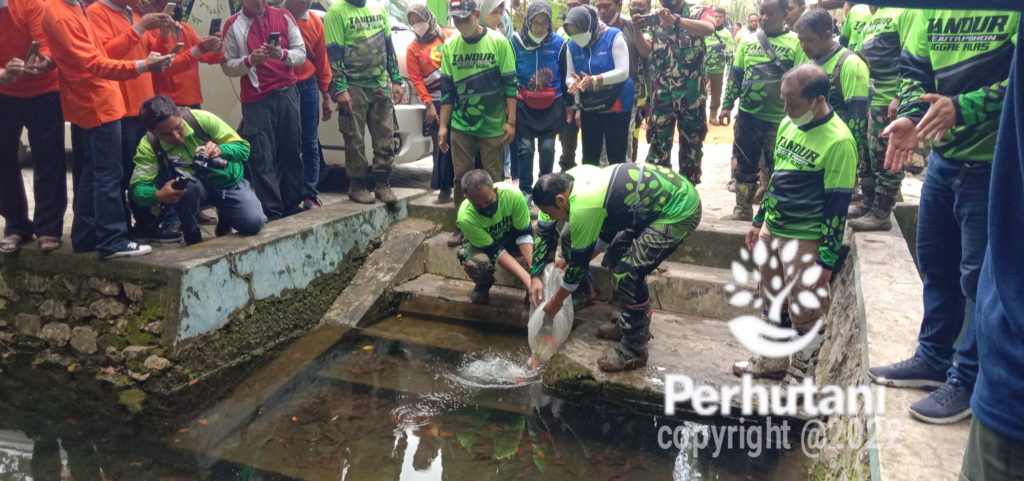 Perhutani Mojokerto dan Forkopimda Lamongan Tabur Benih Ikan Koi Di Kawasan Hutan