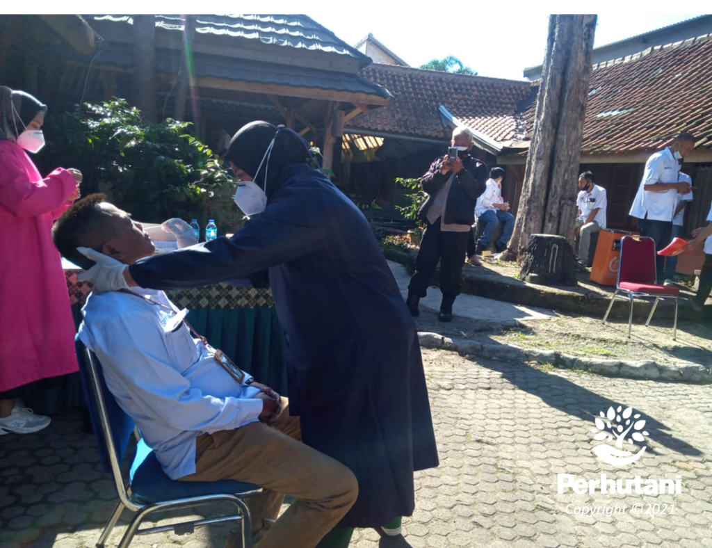 BANDUNG SELATAN, PERHUTANI (8/7/2021) | Perhutani Kesatuan Pemangkuan Hutan (KPH) Bandung Selatan bersama Klinik Bina Medika mengadakan tes Swab Antigen Covid untuk mengantisipasi terjadinya kluster baru penyebaran Covid-19, bertempat di halaman Kantor KPH Bandung Selatan pada Kamis (8/7).
