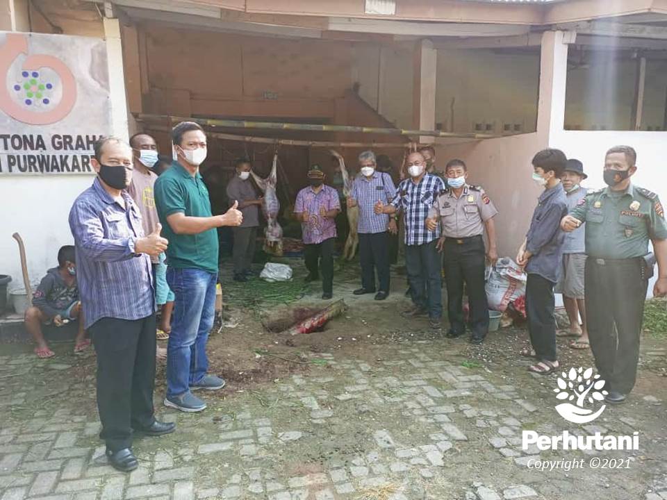 PURWAKARTA, PERHUTANI (23/07/2021) | Perhutani Kesatuan Pemangkuan Hutan (KPH) Purwakarta merayakan Hari Raya Idul Adha 1442 H melakukan pemotongan hewan kurban terdiri dari 1 ekor sapi dan 2 ekor kambing yang dilaksanakan di halaman kantor KPH Purwakarta, Kamis (21/07).