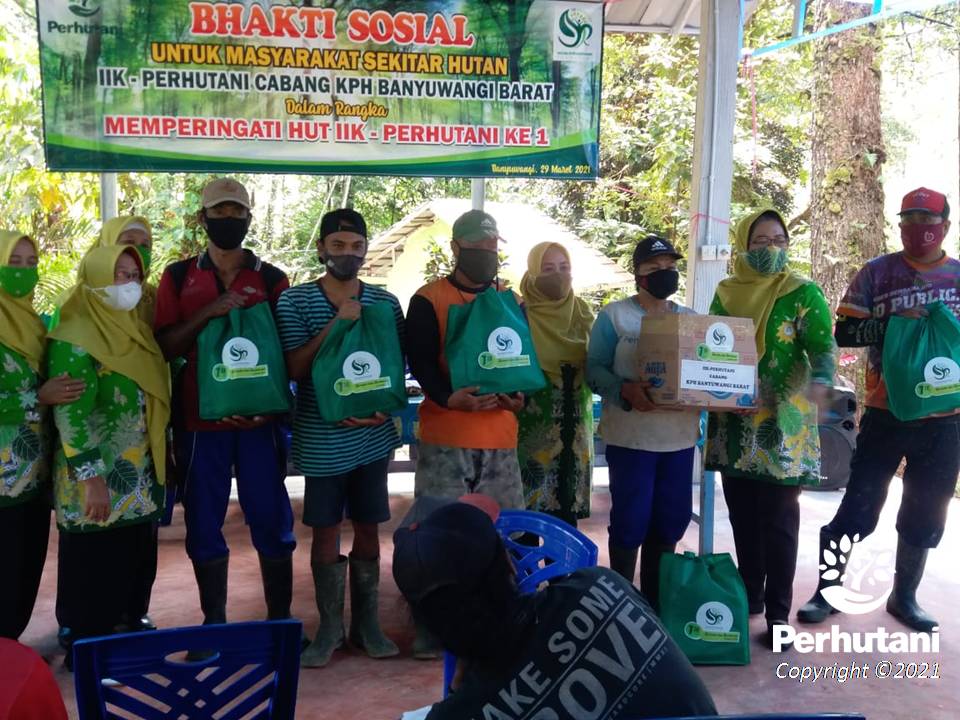 Bantuan sosial berupa paket sembako sebanyak 450 paket, berisi masing-masing minyak goreng 2 liter, gula pasir 2 kilogram, beras 5 kilogram tersebut diserahkan langsung oleh Ketua IIK Perhutani Banyuwangi Barat Sandra Novita kepada masyarakat sekitar hutan.