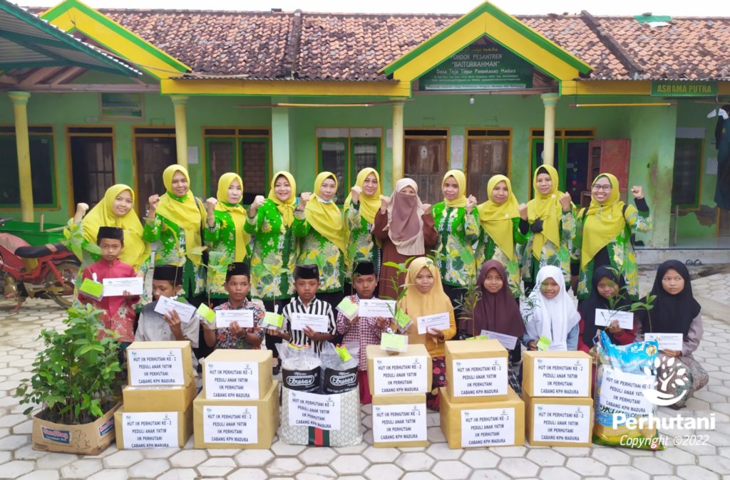 MADURA, PERHUTANI (31/03/2022) | Perhutani bersama Ikatan Istri Karyawan (IIK) Perhutani Cabang Madura memberikan santunan dan sembako kepada anak yatim serta bibit pohon untuk Pondok Pesantren (Ponpes) Baiturahman Pamekasan, Selasa (29/03).