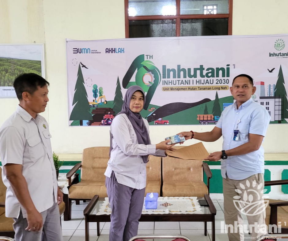 SAMARINDA, PT INHUTANI I (15/03/2023) | Inhutani I Divisi Regional Kalimantan Timur dan Sulawesi Selatan (Divre KTSS) menyerahkan bantuan Tanggung Jawab Sosial dan Lingkungan (TJSL) dalam bentuk dana sarana pendidikan senilai Rp25.000.000,00 (Dua puluh lima juta rupiah) kepada TK (Taman Kanak-Kanak) Tunas Rimba Desa Long Nah. Penyerahan bantuan dilakukaan saat kunjungan ke Unit Manajemen Hutan Tanaman (UMHT) Inhutani I Long Nah,Selasa (14/3).