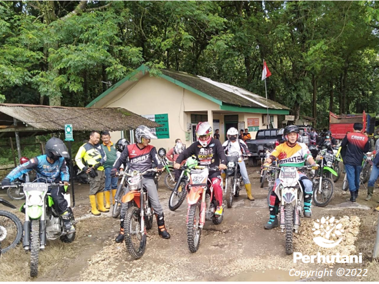 RANDUBLATUNG, PERHUTANI (22/01/2022) | Perhutani Kesatuan Pemangkuan Hutan (KPH) Randublatung bersama Kejaksaan Negeri (Kajari) Blora dan jajaran menggelar kegiatan Komunikasi Sosial (Komsos) dengan ngetril bareng mengelilingi desa sekitar hutan di kawasan hutan Perhutani KPH Randublatung, Jumat (21/01).