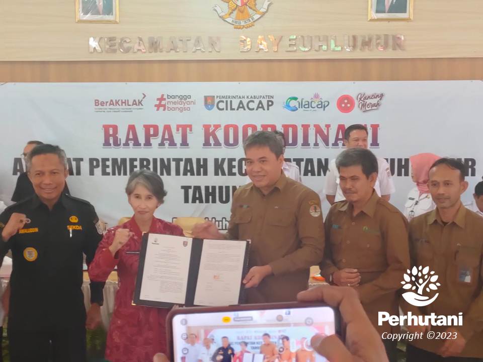 BANYUMAS BARAT, PERHUTANI (17/07/2023) | Bertempat di pendopo kantor Kecamatan Dayeuhluhur Kabupaten Cilacap, Perhutani Kesatuan Pemangkuan Hutan (KPH) Banyumas Barat bersama Pemerintah Kabupaten Cilacap melaksanakan penandatanganan Memorandum of Understanding (MoU) tentang penanggulangan dan penanganan bencana alam, Jumat (14/07).