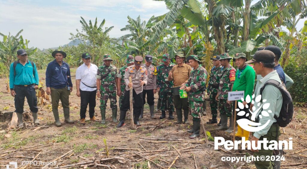 BALAPULANG, PERHUTANI (08/11/2024) | Menjalin sinergitas lintas sektoral, Perhutani Kesatuan Pemangkuan Hutan (KPH) Balapulang melakukan pertemuan dan silaturahmi sekaligus penanaman jagung dengan sistem tumpang sari jagung di lahan Perhutani dengan unsur Forum Koordinasi Pimpinan Kecamatan (Forkopimcam) Tonjong di Petak 124 Dukuh Kembeng Desa Kutamendala, Rabu (06/11).