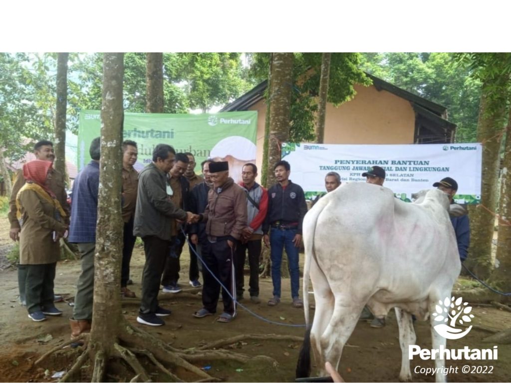 BANDUNG, PERHUTANI (12/07/2022) | Perhutani Kesatuan Pemangkuan Hutan (KPH) Bandung Selatan salurkan hewan kurban kepada Kelompok Tani Sadap (KTS) lingkup penyadap getah pinus Bagian Kesatuan Pemangkuan Hutan (BKPH) Tambak Ruyung Barat Kesatuan bertempat di Jalan Tangsi Desa Gunung Halu Kecamatan Gunung Halu Kabupaten Bandung Barat pada Selasa (12/07).