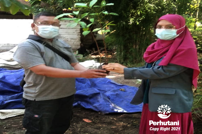 PARENGAN, PERHUTANI (9/4/2021) | Perhutani Kesatuan Pemangkuan Hutan (KPH) Parengan memberikan bantuan bibit pohon jenis rimba campur kepada Ikatan Pelajar Putri Nahdhatul Ulama (IPPNU) Desa Katen Kecamatan Trucuk Kabupaten Bojonegoro, Sabtu (9/4).