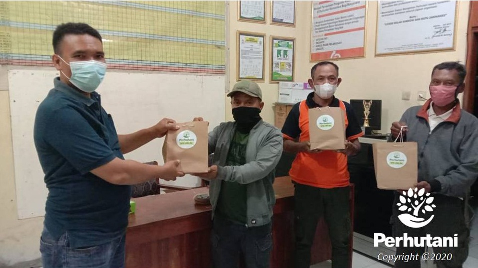 Bantuan tersebut diserahkan usai melakukan kerja bakti pembaharuan sadapan getah pinus di wilayah Bagian Kesatuan Pemangkuan Hutan (BKPH) Ponorogo Selatan.