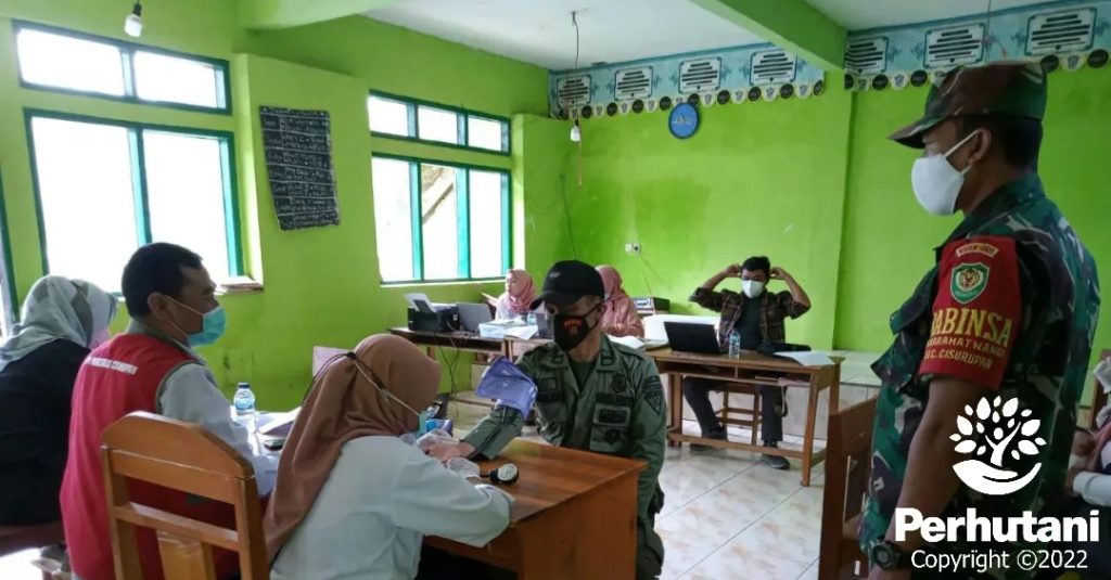 GARUT PERHUTANI, (23/02/2022) | Perhutani Kesatuan Pemangkuan Hutan (KPH) Garut bekerjasama dengan Desa Keramat Wangi menggelar Vaksinasi ke-3 Booster secara bergiliran bertempat di jungul Desa Keramat Wangi Kecamatan Cisurupan. Rabu (23/02).