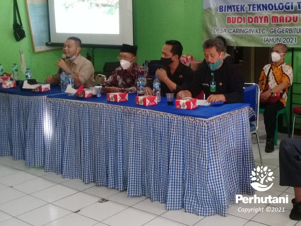 Administratur Perhutani KPH Sukabumi melalui Kepala Sub Seksi (KSS) Hukum, Kepatuhan dan Komunikasi Perusahaan (HK & Kompers) Chendra Eka Permana dalam sambutannya menyampaikan bahwa bimtek tepat guna budidaya lebah merupakan upaya Perhutani KPH Sukabumi, Dinas PMD dan CDK untuk mengimplementasikan program Desa agar bisa berinovasi budidaya Madu Trigona yang berlokasi di Desa Caringin.