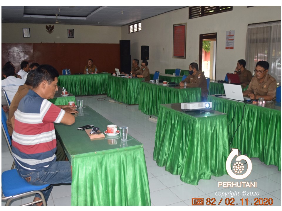 JOMBANG, PERHUTANI (03/11/2020) | Perhutani Kesatuan Pemangkuan Hutan (KPH) Jombang mengadakan pertemuan bersama dengan Pabrik Gula (PG) Cukir Jombang dan Lembaga Masyarakat Desa Hutan (LMDH) Wono Slamet Desa Mojoduwur Jombang serta LMDH Pakis Makmur Desa Pakis Mojokerto membahas kerjasama agroforestry tebu bertempat di Kantor Perhutani KPH Jombang, Senin (02/11).