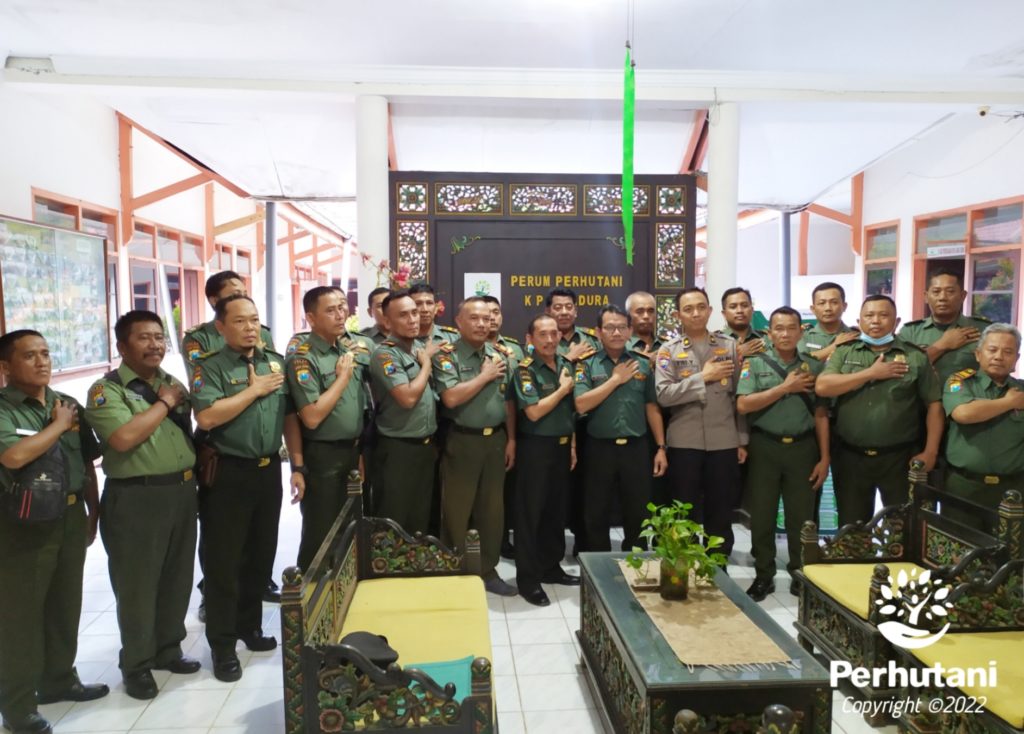 MADURA, PERHUTANI (13/06/2022) | Direktorat Pembinaan Masyarakat (Ditbinmas) Kepolisian Daerah (Polda) Jawa Timur (Jatim) memberikan pembinaan dalam rangka monitoring tugas Polisi hutan (Polhut) di wilayah kerja Kesatuan Pemangkuan Hutan (KPH) Madura yang berlangsung di Gedung Simonget kantor KPH Madura, Senin (13/06).