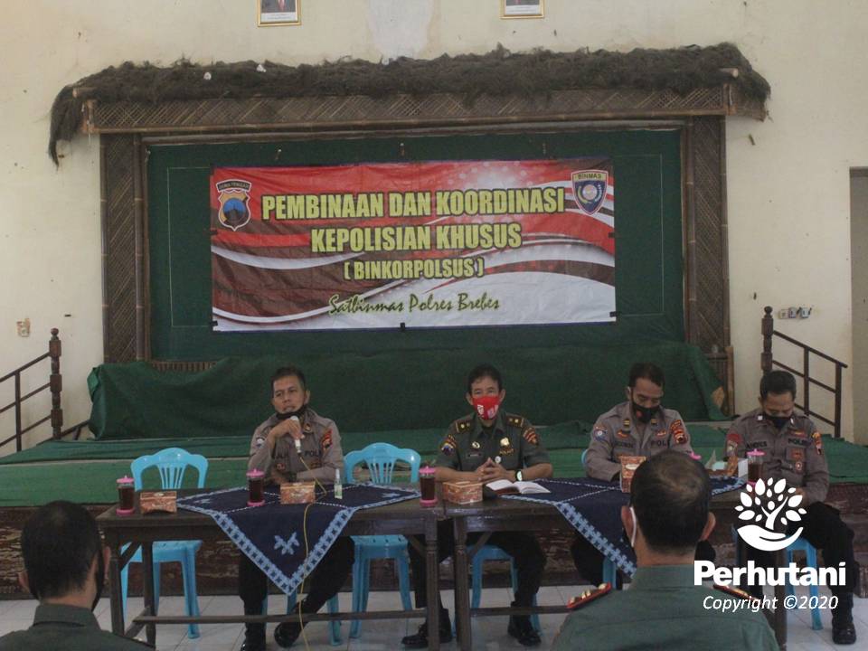 PEKALONGAN BARAT, PERHUTANI (19/11/2020) | Perhutani Kesatuan Pemangkuan Hutan (KPH) Pekalongan Barat bersama Kepolisian Resor (Polres) Brebes memberikan Pembinaan dan Penyuluhan kepada Kepolisian Khusus (Polsus) di Gedung Serba Guna Kantor KPH Pekalongan Barat, Slawi, Kecamatan Pangkah, Kabupaten Tegal, Selasa (17/11).