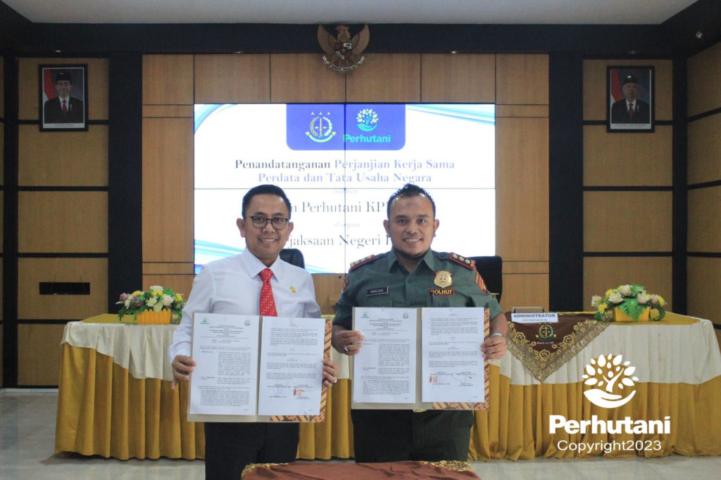BLITAR, PERHUTANI (31/05/2023) | Perhutani Kesatuan Pemangkuan Hutan (KPH) Blitar dan Kejaksaan Negeri Blitar menandatangani nota kesepahaman atau memorandum of understanding (MoU) tentang penanganan hukum Perdata dan Tata Usaha Negara di Blitar, Rabu (31/05).
