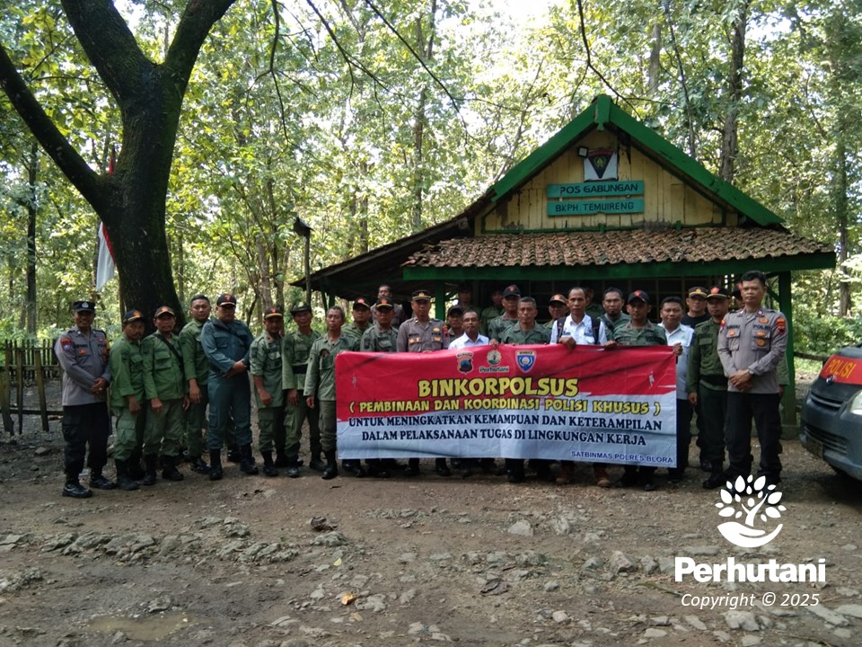 RANDUBLATUNG, PERHUTANI (08/05/2025) | Perum Perhutani Kesatuan Pemangkuan Hutan (KPH) Randublatung bekerja sama dengan Satuan Pembinaan Masyarakat (Satbinmas) Polres Blora menggelar kegiatan kesamaptaan bagi petugas lapangan pada Rabu (07/05) bertempat di Pos 118A Resort Pemangkuan Hutan (RPH) Trembes, Bagian Kesatuan Pemangkuan Hutan (BKPH) Temuireng.