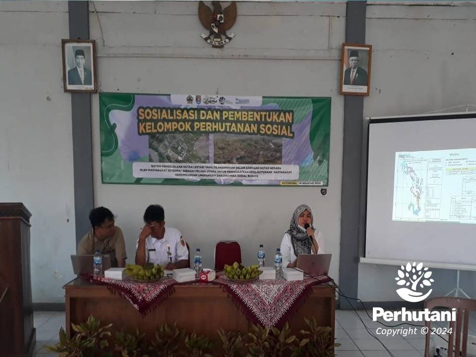BANYUMAS BARAT, PERHUTANI (15/08/2024) | Kesatuan Pemangkuan Hutan (KPH) Banyumas Barat menjadi salah satu nara sumber pada Sosialisasi Perhutanan Sosial dan Pembentukan Kelompok Perhutanan Sosial yang diadakan oleh Cabang Dinas Kehutanan Wilayah VI Dinas Lingkungan Hidup dan Kehutanan Provinsi Jawa Tengah. Acara bertempat di Balai Pertemuan Kelurahan Kuta Waru Kecamatan Cilacap Tengah Kabupaten Cilacap, Rabu (14/08).