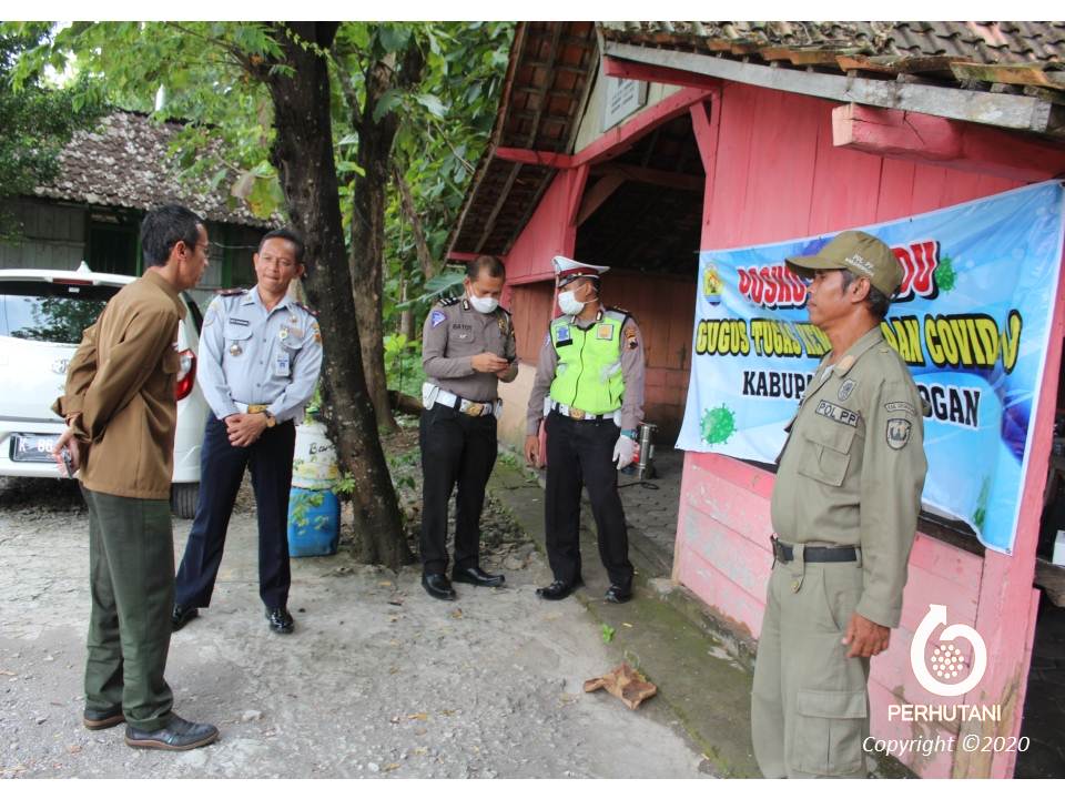 GUNDIH, PERHUTANI ( 31/3/2020) | Perhutani Kesatuan Pemangkuan Hutan (KPH) Gundih mendukung Gugus Tugas Kewaspadaan Covid-19 Kabupten Grobogan dengan menyediakan Rest Area di petak 56 b2 Resort Getas Bagian Kesatuan Pemangkuan Hutan (BKPH) Monggot sebagai Posko Terpadu Pencegahan Covid-19. Tim yang terlibat dalam kegiatan posko tersebut terdiri dari petugas Kodim 07.17 Purwodadi, Polres Grobogan, Dinas Kesehatan, BPBD, Dinas Perhubungan dan Satpol PP .