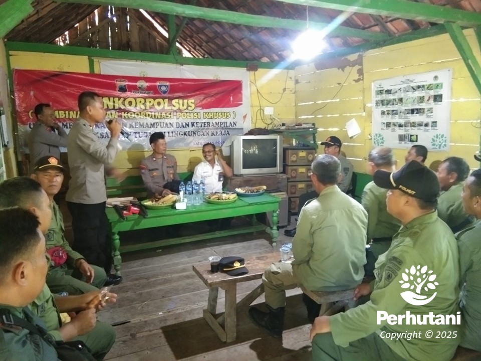 RANDUBLATUNG, PERHUTANI (08/05/2025) | Guna meningkatkan wawasan dan pengetahuan petugas lapangan, Perum Perhutani Kesatuan Pemangkuan Hutan (KPH) Randublatung bekerja sama dengan Satuan Pembinaan Masyarakat (Satbinmas) Polres Blora memberikan pembekalan kepada petugas di lapangan. Kegiatan dilaksanakan pada Rabu (07/05), bertempat di Pos 118A Resort Pemangkuan Hutan (RPH) Trembes, Bagian Kesatuan Pemangkuan Hutan (BKPH) Temuireng, KPH Randublatung.