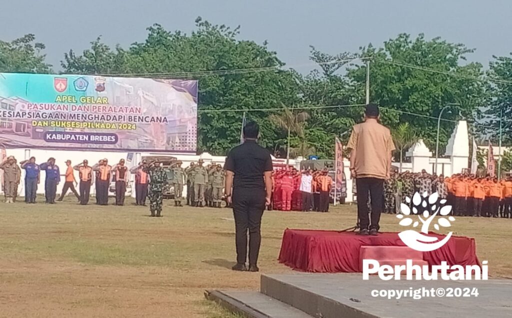 BALAPULANG, PERHUTANI (14/11/2024) | Perhutani Kesatuan Pemangkuan Hutan (KPH) Balapulang bersama Pemerintah Kabupaten (Pemkab) Brebes serta stakeholder terkait. seperti TNI-Polri melaksanakan Apel Gelar Pasukan dan Peralatan Kesiapsiagaan Penanggulangan Bencana Alam di halaman Kantor Pemerintahan Terpadu (KPT) Brebes, Kamis (14/11).