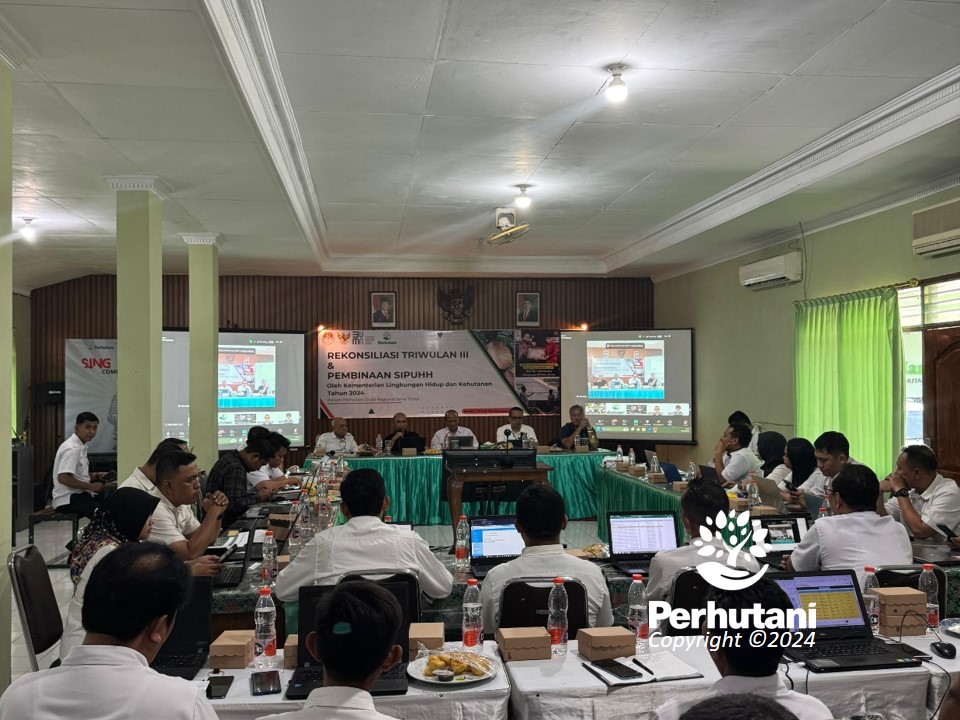 KEDIRI,PERHUTANI (24/10/2024) | Perum Perhutani Kesatuan Pemangkuan Hutan (KPH) Kediri menjadi tuan rumah kegiatan Rekonsiliasi Triwulan III dan Pembinaan Sistem Informasi Perizinan Usaha Hasil Hutan (SIPUHH) oleh Kementerian Lingkungan Hidup dan Kehutanan lingkup Divisi Regional (Divre) Jawa Timur (Jatim), pada hari Rabu (23/10).