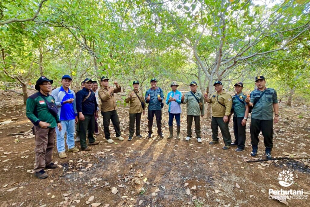MADURA, PERHUTANI (16/09/2025) | Perhutani Kesatuan Pemangkuan Hutan (KPH) Madura melakukan Monitoring dan Evaluasi (Monev) implementasi program Kemitraan Kehutanan Perhutani (KKP) berupa tanaman agroforestri jambu mete di petak 36A, wilayah Resort Pemangkuan Hutan (RPH) Sigentong, Bagian Kesatuan Pemangkuan Hutan (BKPH) Sepanjang, Selasa, (16/09).