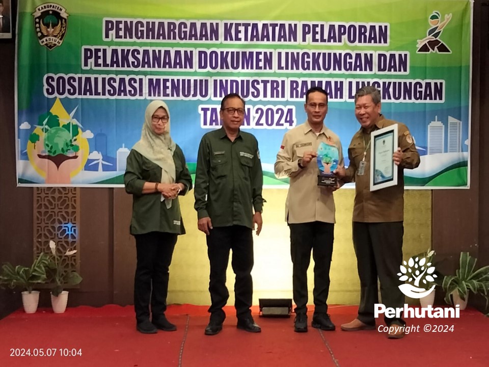 Penghargaan berupa piagam dan tropi diserahkan langsung Kepala DLH Kabupaten Madiun M. Zahrowi kepada Administratur Perhutani Kesatuan Pemangkuan Hutan (KPH) Saradan Wisik Sugiarto.