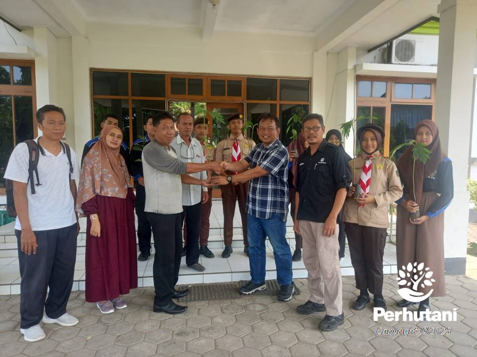 PATI, PERHUTANI (07/12/2023) | Perhutani Kesatuan Pemangkuan Hutan (KPH) Pati menyerahkan bantuan bibit sebanyak 2.000 plances berupa tanaman jenis kehutanan dan buah kepada Organisasi Masyarakat (Ormas) / Lembaga Swadaya Masyarakat (LSM) Kendeng Hijau di Pati, Kamis  (07/12).
