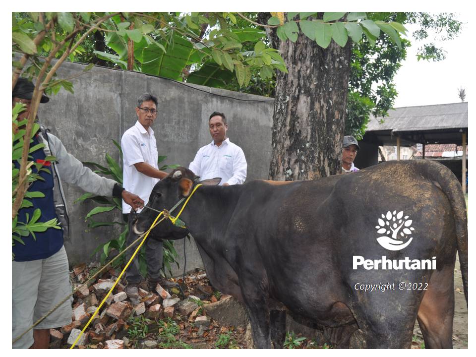 Hewan qurban sapi tersebut merupakan pemberian dari program Tanggung Jawab Sosial Lingkungan (TJSL) Non PUMK, sedangkan yang 1 ekor kambing merupakan qurban dari Administratur Perhutani KPH Parengan.