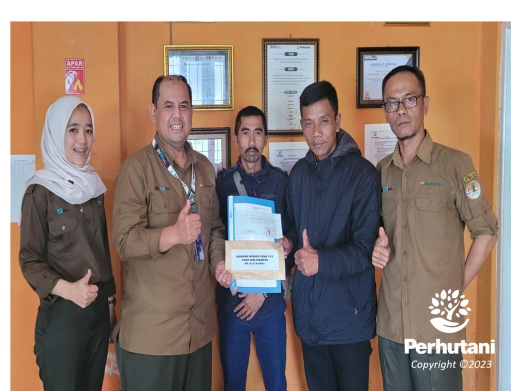 BANDUNG UTARA, PERHUTANI (10/05/2023) | Perhutani Kesatuan Pemangkuan Hutan (KPH) Bandung Utara menyerahkan sharing wisata Zona 235, kepada Lembaga Masyarakat Desa Hutan (LMDH) Giri Makmur sebesar Rp 6.216.000 bertempat di Resort Pemangkuan Hutan (RPH) Lembang, Bagian Kesatuan Pemangkuan Hutan (BKPH) Lembang, Kabupaten Bandung Barat, Selasa (09/05).