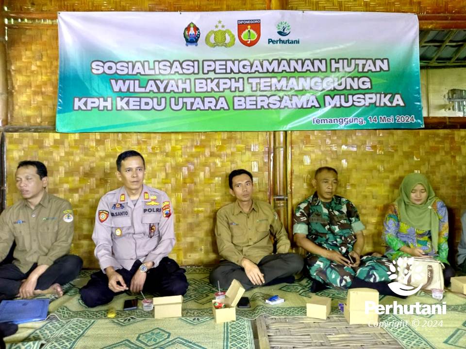 KEDU UTARA, PERHUTANI (16/05/2024) | Perhutani Kesatuan Pemangkuan Hutan (KPH) Kedu Utara bersama Forum Komunikasi Pimpinan Kecamatan (Forkopimcam) Candiroto melaksanakan sosialisasi pengamanan hutan kepada masyarakat Desa Canggal Kecamatan Candiroto Kabupaten Temanggung yang merupakan Penggarap Lahan Hutan Wilayah Resort Pemangkuan Hutan (RPH) Kwadungan Bagian Kesatuan Pemangkuan Hutan (BKPH) Temanggung di Wana Wisata Sibajag Green Canyon (SGC), Selasa (14/05).