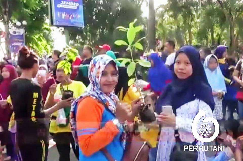 Dengan mengusung tema ‘Ayo Hijaukan Bumi’ sebanyak 150 orang lebih para Ibu Rimbawan Perhutani Jember mebagi-bagikan bibit buah kepada masyarakat Jember pada acara rutin CFD hari Minggu dengan diiringi selebrasi marching band murid TK Tunas Rimba.
