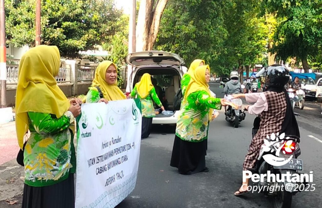 BANYUWANGI UTARA, PERHUTANI (18/03/2025) | Perum Perhutani Kesatuan Pemangkuan Hutan (KPH) Banyuwangi Utara bersama Ikatan Istri Karyawan Perhutani (IIKP) Cabang Banyuwangi Utara melakukan bakti sosial untuk membagikan takjil kepada warga yang melintas di depan Kantor Perhutani KPH Banyuwangi Utara, Jalan Jaksa Agung Suprapto Banyuwangi pada Selasa (18/03).