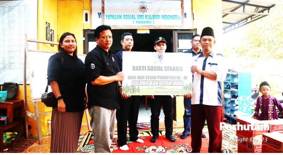 KEDU SELATAN, PERHUTANI (13/01/2023) | Serikat Karyawan (Sekar) Perum Perhutani Kesatuan Pemangkuan Hutan (KPH) Kedu Selatan peringati Hari Jadi ke 18 tahun, dengan berbagi sembako kepada Panti Asuhan Yayasan Umi Kulsum Indonesia (Yasuki) Desa Lugosobo Kecamatan Gebang Kabupaten Purworejo, Selasa (10/01).