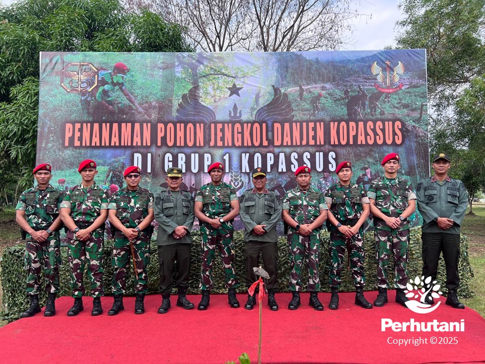 BANTEN, PERHUTANI (24/06/2025) | Perum Perhutani Kesatuan Pemangkuan Hutan (KPH) Banten bersama Komando Pasukan Khusus (Kopassus) Grup 1 Serang melaksanakan kegiatan penanaman pohon bersama di Markas Kopassus Grup 1 Serang, Jalan Raya Cilegon-Merak, Taman Baru, Kecamatan Taktakan, Kabupaten Serang, pada Sabtu (21/06).