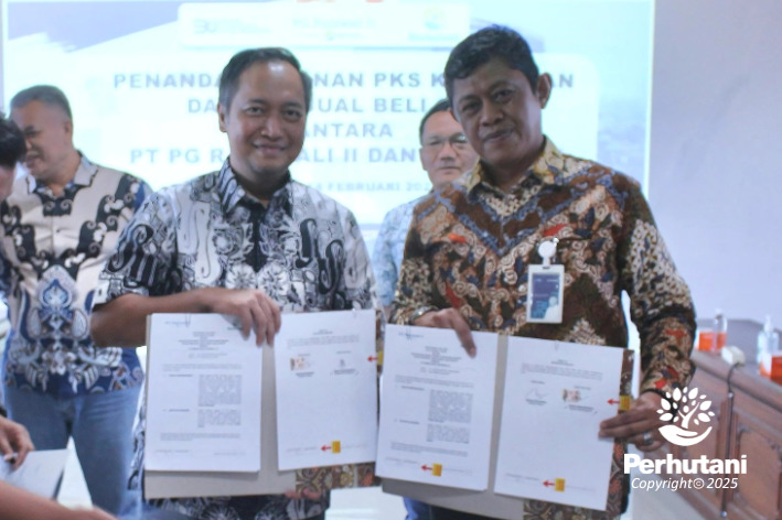 CIREBON, PERHUTANI (17/02/2025) | Sebagai langkah strategis dalam memperkuat sinergi antar Badan Usaha Milik Negara (BUMN) di sektor industri gula, Perhutani Divisi Regional Jawa Barat dan Banten bersama PT Pabrik Gula (PG) Rajawali II menandatangani perjanjian kerja sama terkait kemitraan serta mekanisme jual beli Gula Kristal Putih untuk Musim Giling 2025. Acara penandatanganan perjanjian ini berlangsung di Cirebon pada Jumat (14/02). Kesepakatan tersebut ditandatangani oleh Kepala Divisi Regional Jawa Barat dan Banten Yudha Suswardhanto, bersama Direktur Utama PT PG Rajawali II Ardian Wijanarko.