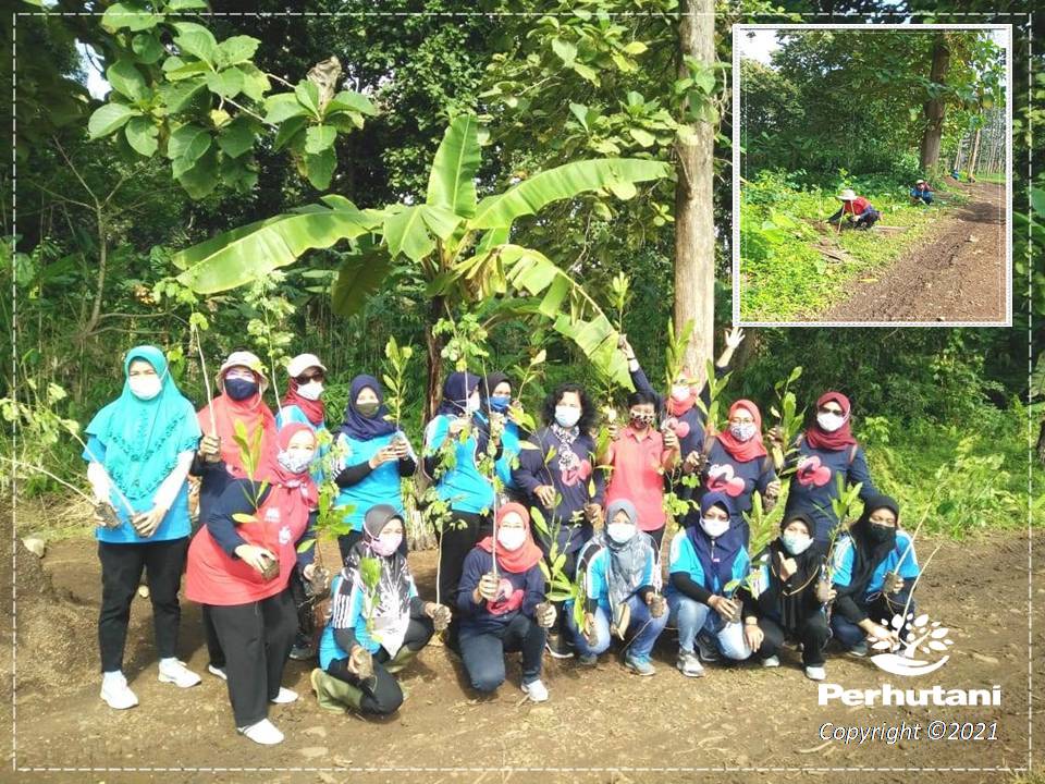 PATI, PERHUTANI (23/03/2021) | Dalam rangka menyemarakkan Hari Jadi ke-60, Perhutani Kesatuan Pemangkuan Hutan (KPH) Pati bersama Ikatan Istri Karyawan Perhutani (IIKP) mengadakan kegiatan gerakan menanam pohon. Hal tersebut dilakukan sebagai wujud peran serta istri rimbawan yang turut peduli terhadap kelestarian hutan, Selasa (23/03).