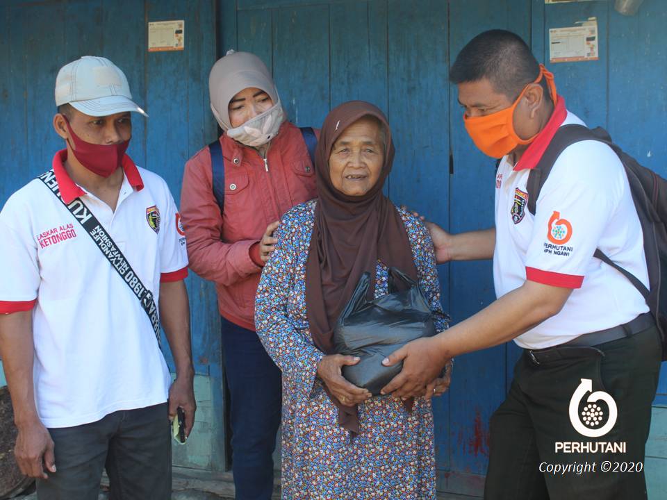 Sekar Perhutani Bagikan Sembako dan Masker Kepada Warga Sekitar Hutan di Ngawi