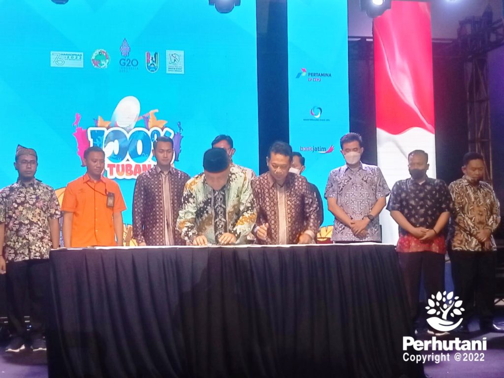Perhutani Teken MoU Perluasan Pangsa Pasar UMKM Dalam Acara 100% Tuban
