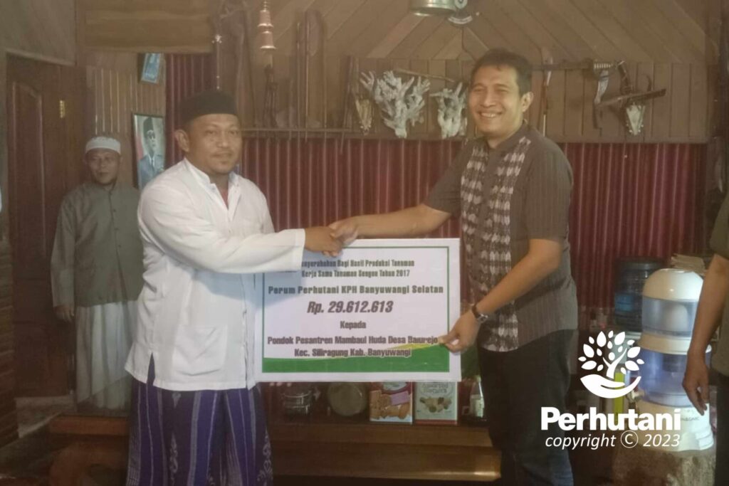 Tingkatkan Kemitraan dengan Masyarakat, Perhutani Banyuwangi Selatan Serahkan Dana Bagi Hasil Produksi pada Ponpes dan LMDH