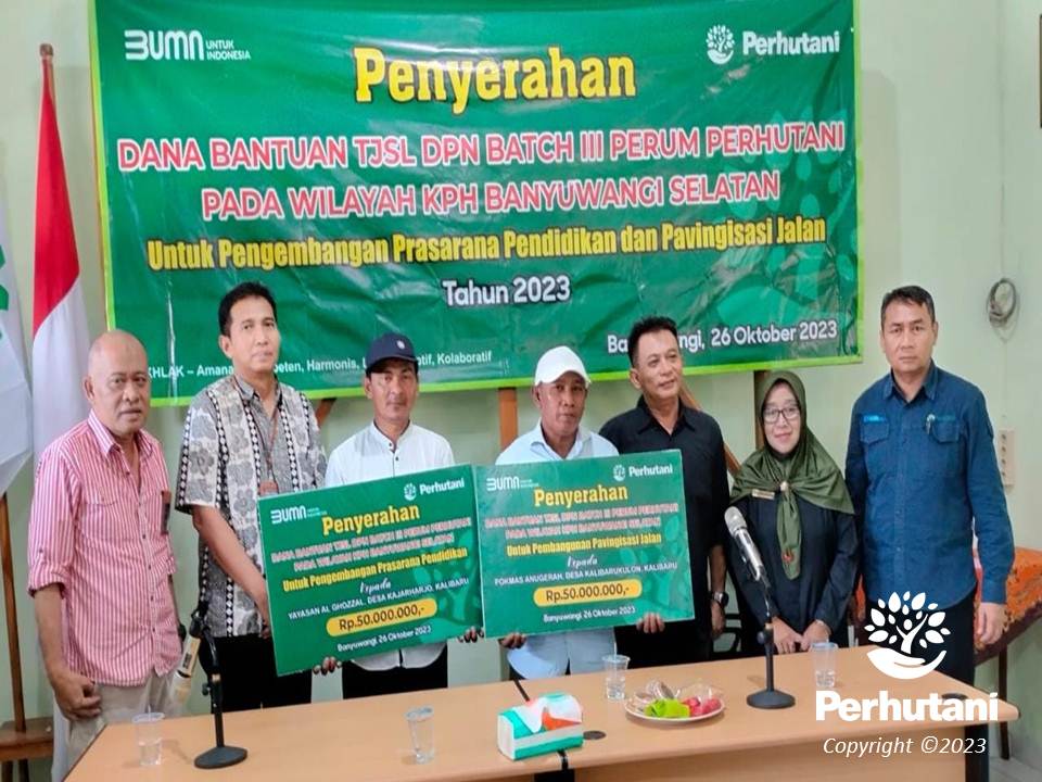 Perhutani Serahkan Bantuan Dana Rp.100 Juta Untuk Perbaikan Prasarana Pendidikan dan Infrastruktur Jalan di Banyuwangi
